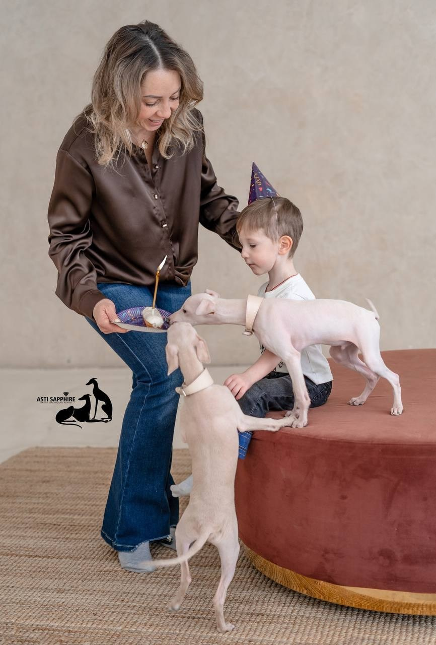 Подрастает невероятное трио братьев-левреток. Три абсолютно разных характера, три источника безграничной любви и нежности. Дата рождения 21.10.2025.