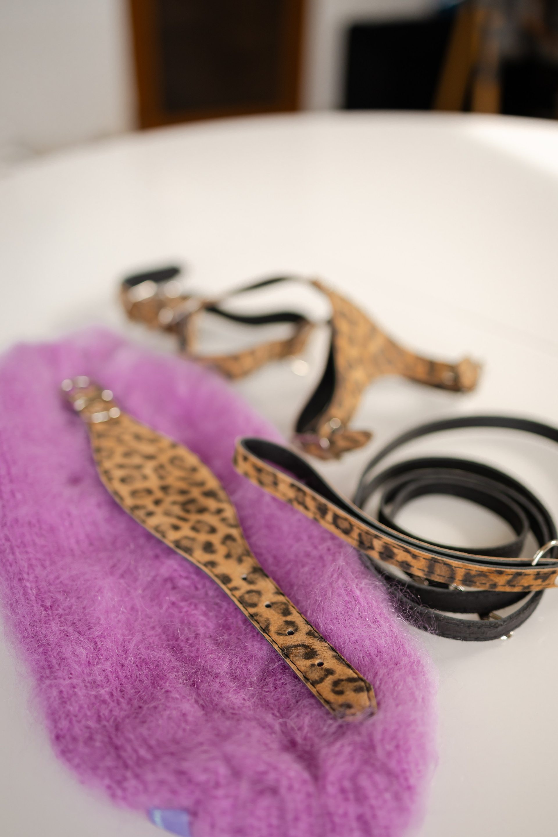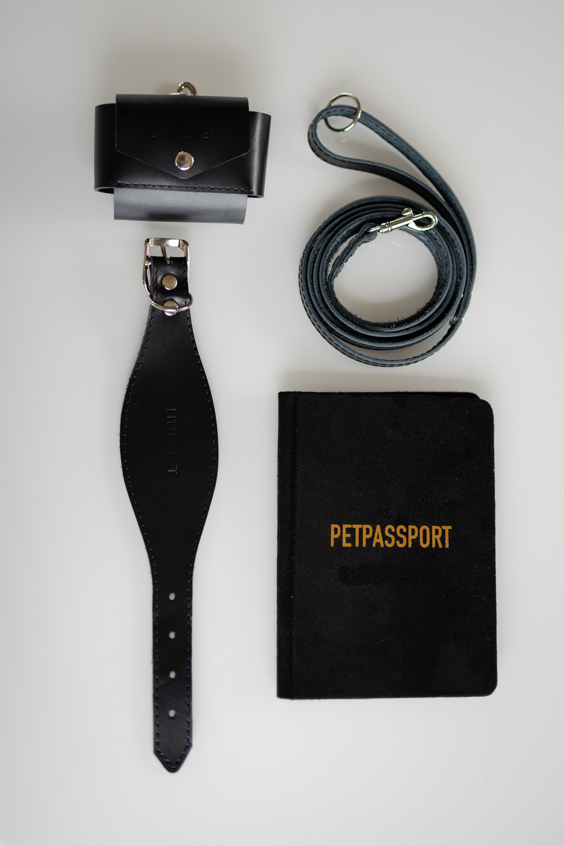 • Амуниция (ошейник, шлейка, холдер, поводок) — полный комплект стиля.